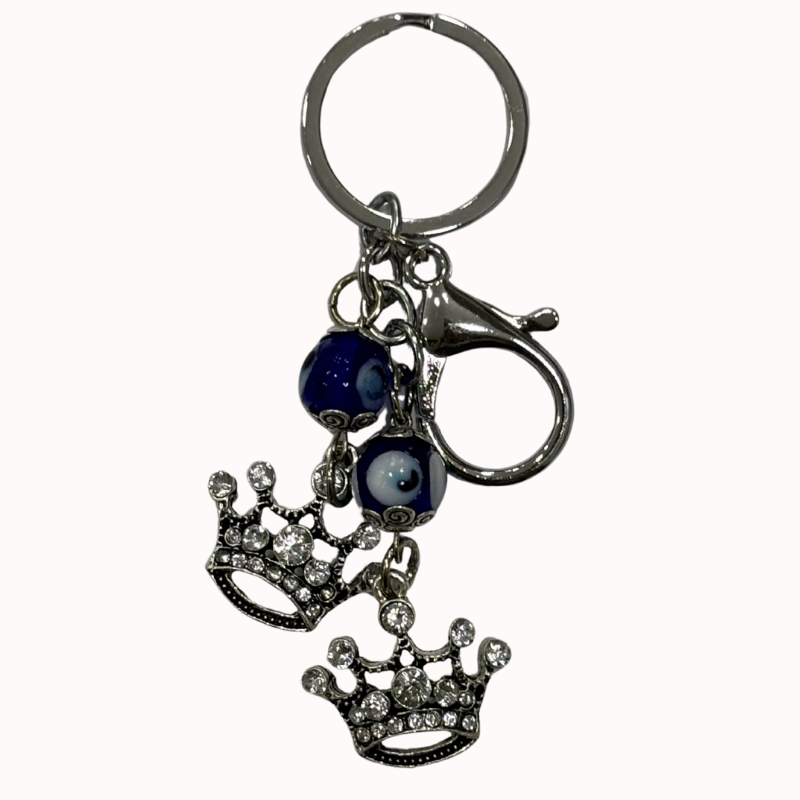 • Simbolismo: Las coronas, que representan el éxito y el poder personal, se combinan con cuentas de “ojo turco” (nazar) en azul profundo, el amuleto tradicional para la protección contra las envidias y las malas energías.