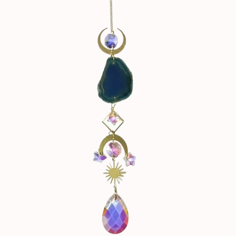 Colgante Atrapasol Celestial con Ágata Azul y Prismas