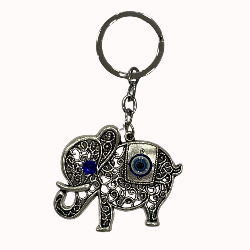 - Simbolismo: El elefante con la trompa hacia arriba es un símbolo universal de prosperidad, fuerza y buena fortuna. Al combinarse con el ojo turco (nazar), se convierte en un potente escudo para atraer el éxito y protegerse de las envidias.