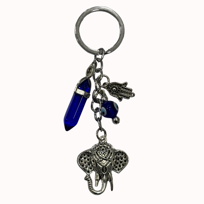 Llavero Amuleto: Elefante y Cristal de la Suerte