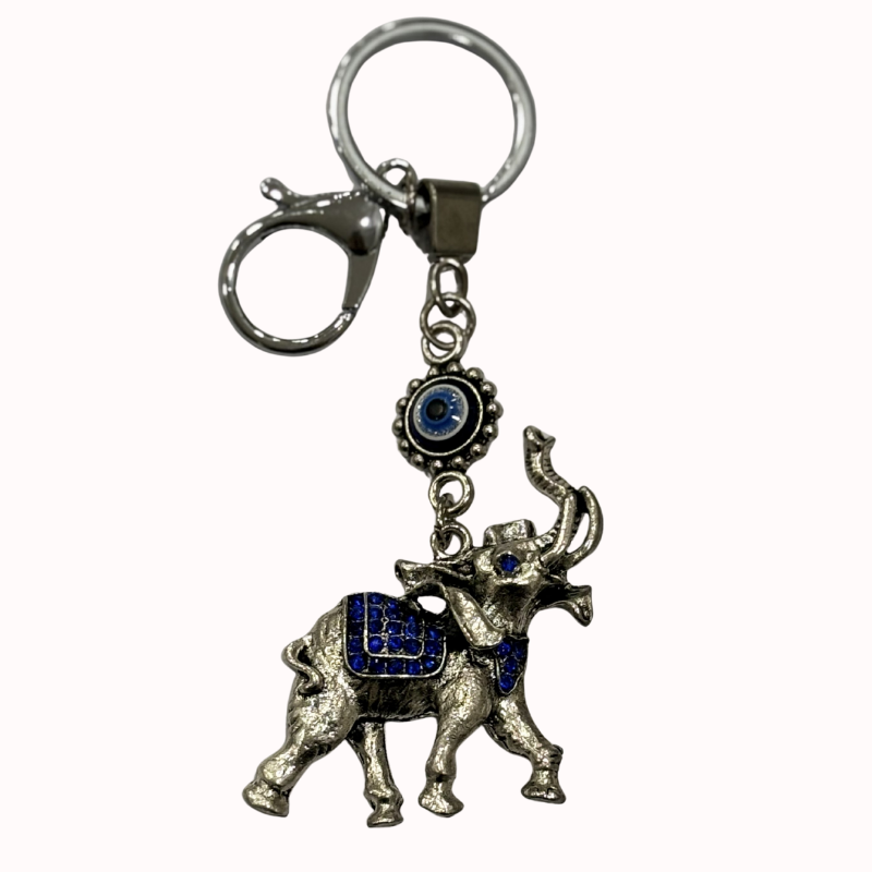 - Simbolismo: El elefante es un símbolo universal de buena fortuna, fuerza y sabiduría. Se combina con una cuenta de “ojo turco” (nazar) en la parte superior, creando un potente amuleto para atraer la prosperidad y protegerse de las energías negativas.