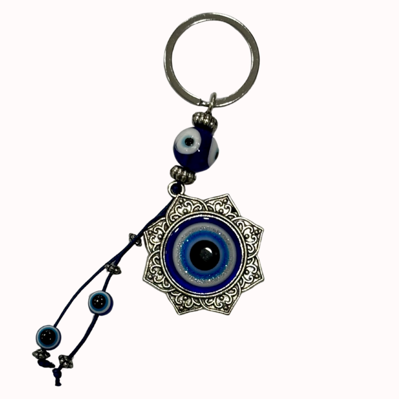 - Simbolismo: El diseño se complementa con una cuenta esférica superior y colgantes laterales con mini ojos turcos (nazar), reforzando su función como amuleto contra las energías negativas.