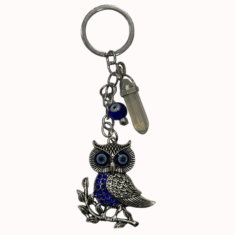 Llavero Amuleto: Búho Sabio y Cristal de Cuarzo
