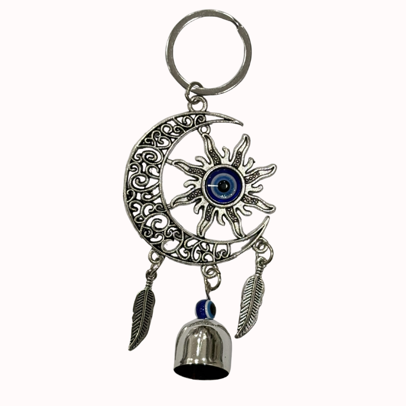 - Simbolismo: El sol y la luna representan el equilibrio de energías, mientras que el ojo turco (nazar) central y el sonido de la campana actúan como potentes protectores para limpiar y alejar las malas vibraciones.