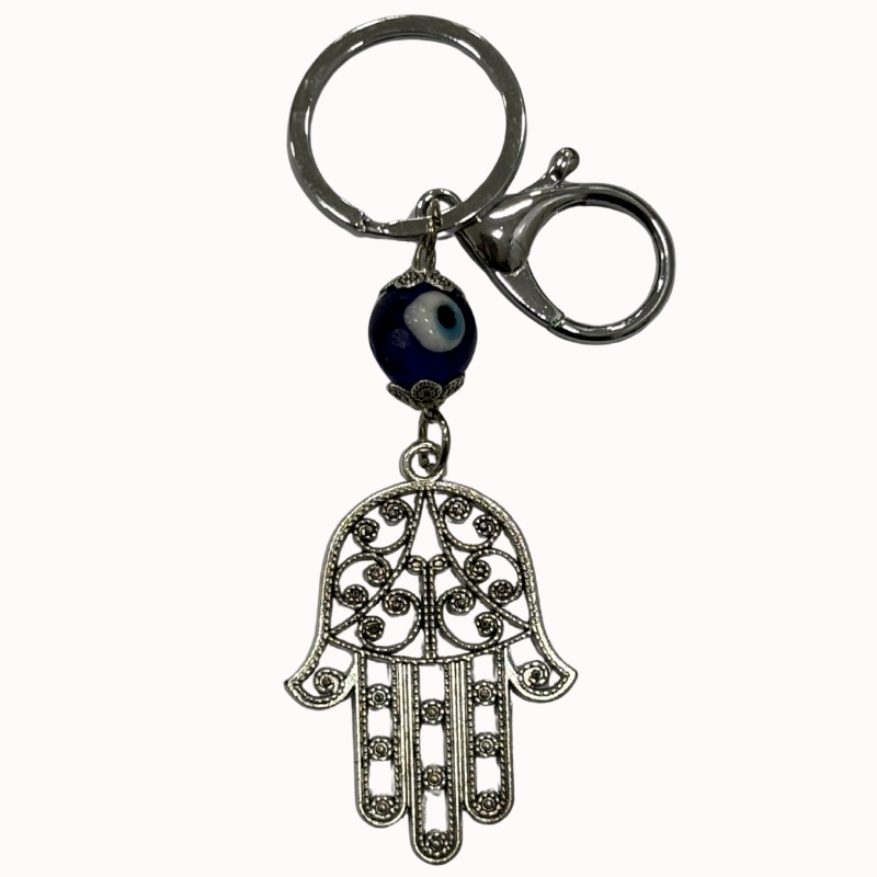 - Material: Está fabricado en metal con acabado plateado. Incluye un mosquetón y una anilla circular resistente, ideal para organizar tus llaves o como accesorio decorativo con significado para bolsos y mochilas.