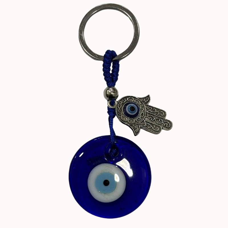 Llavero Amuleto: Ojo Turco de Cristal y Mano de Fátima