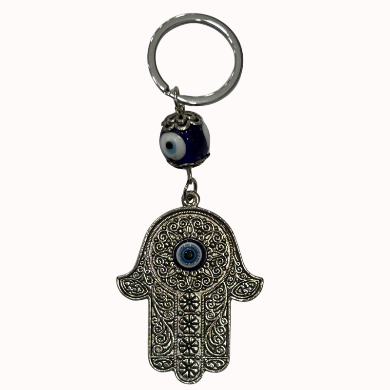 - Simbolismo: En el centro de la palma lleva un “ojo turco” (nazar) en color azul profundo, combinando dos de los símbolos más potentes para atraer la buena fortuna y proteger contra las energías negativas.